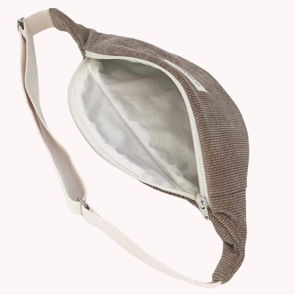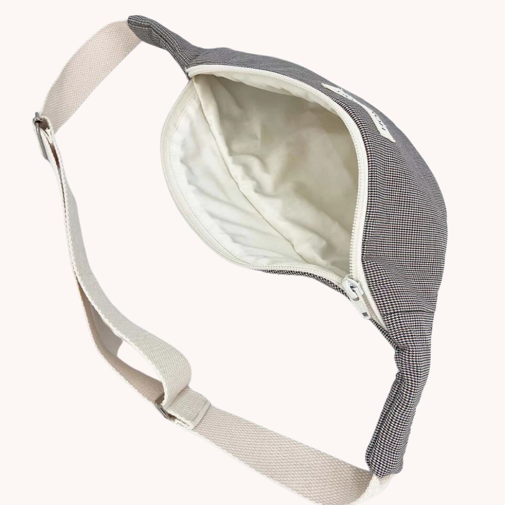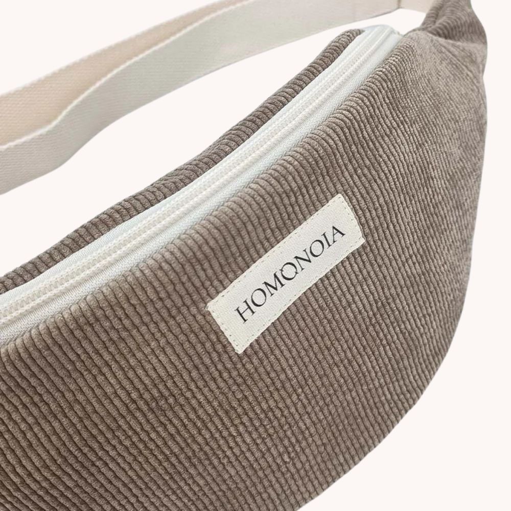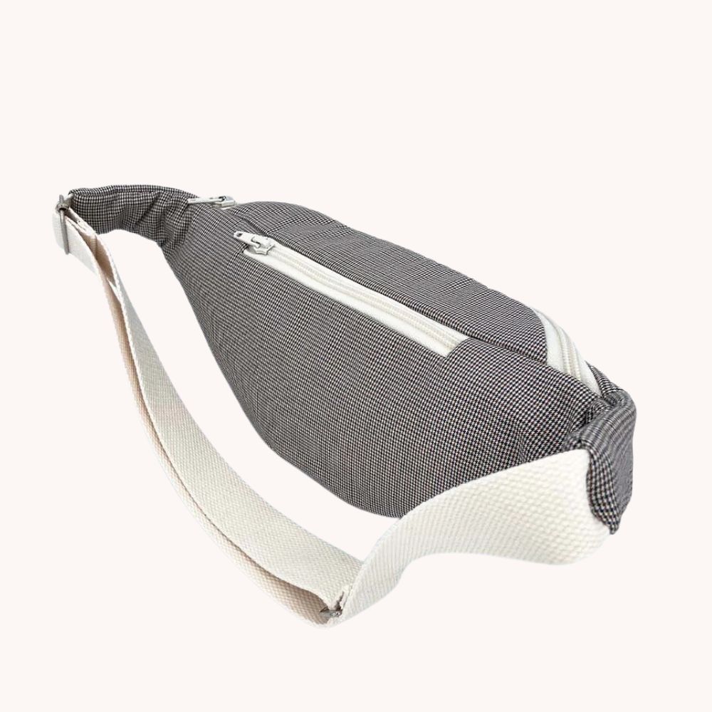 Hyper pratique? oui carrément! Les sacs bananes upcyclés Homonoïa possèdent une grande poche principale ainsi qu'une petite poche sur le dos. Sa anse est réglable pour que vous puissiez l'enfiler facilement.